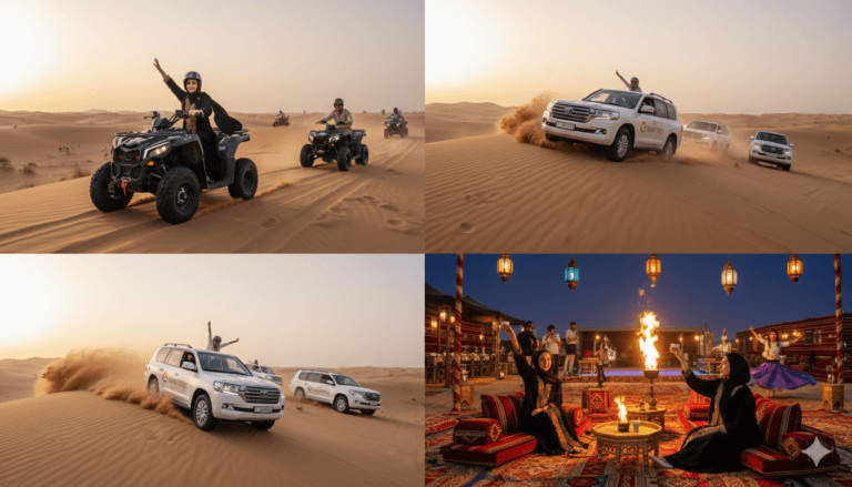 Experience the magic of the desert at golden hour with our Sunset Desert Safari & Quad Ride. Begin your adventure with an exciting quad bike ride across the dunes, followed by a scenic desert safari through rolling sand landscapes as the sun sets. This experience blends thrill, natural beauty, and authentic desert vibes, making it perfect for adventure seekers and first-time visitors alike.